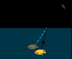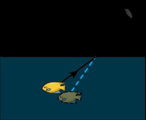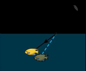 秋高气爽,某校组织初二的学生们去秋游,小华和小明准备去湖里捉鱼,走近岸边,一条小鱼正静卧湖底,下图光路图中符合他们看到鱼的过程的是