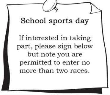 You must have signed permission to takepart in sports day.