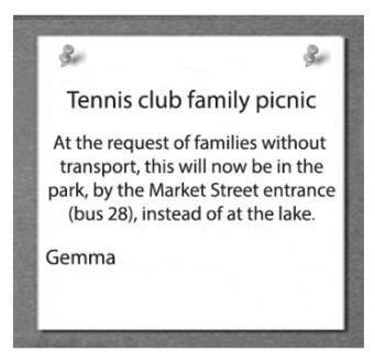 Gemma has changed the picnic place so it’seasier for everyone to get to.