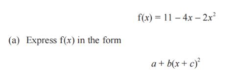 Express f(x)=3+12x-2x2in the form: y= a-b(x+c)2