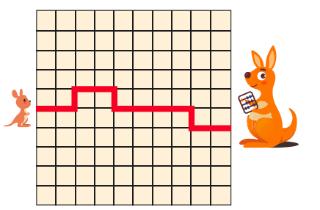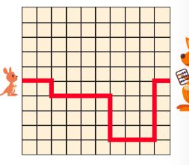 5 baby kangaroos are hopping to their mothers along the paths shown below. Which path is the shortest?(最短的)