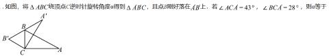 如图,在△ABC中,∠ACB=∠ABC=75°,将△ABC绕点C旋转,得到△DCE,若点A的对应点D恰好在BC的延长线上,则旋转方向和旋转角可能为